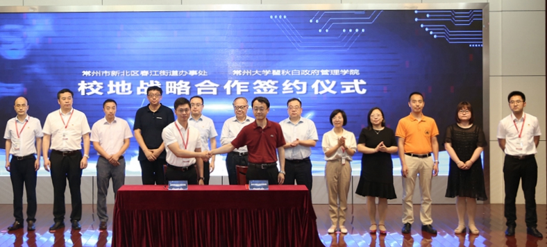 6月29日,瞿秋白政府管理學院與新北區春江街道辦事處在新北區春江中心小學一樓多功能廳舉辦校地戰略合作協議簽約暨“社區治理學院”揭牌儀式。瞿秋白政府管理學院院長宋林飛,新北區民政局局長楊震乾,區黨工委(區委)黨建領導小組辦公室副主任、組織部干部一處(老干部工作處)處長周雪珺出席活動,瞿秋白政府管理學院相關負責人,春江街道全體黨政領導、公務員,各辦局、社區、派出所、自規局濱江所、市場監管分局相關領導及民情觀察員等130余人參加活動。