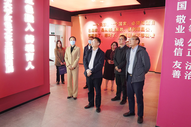 專家組一行實地察看了常州大學紅色文化主題教育館、紀俊玲教授“植物染料提取及其應用研究”工作室、黨盟共建學院——史良法學院、徐培晨美術館,參觀了“鑄牢中華民族共同體意識”教育主題書畫展,詳細了解了學校協同育人同心教育實踐基地的文化傳統、優勢特色和教育意義。
