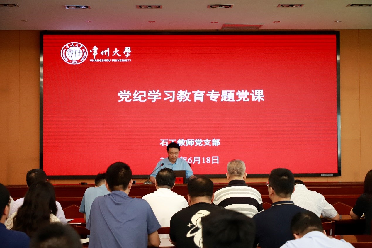 為深入學習貫徹習近平總書記關于黨紀學習教育的重要講話和重要指示精神,落實學校黨委關于開展黨紀學習教育的相關要求,6月18日上午,黨委常委、副校長彭明國為石工學院講授“加強黨的紀律建設,抓好黨紀學習教育”專題黨課。石工學院黨政班子、支部書記及石工教師黨支部全體黨員參會,院黨委書記彭浩平主持會議。